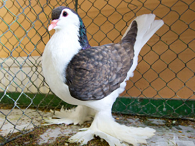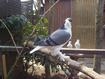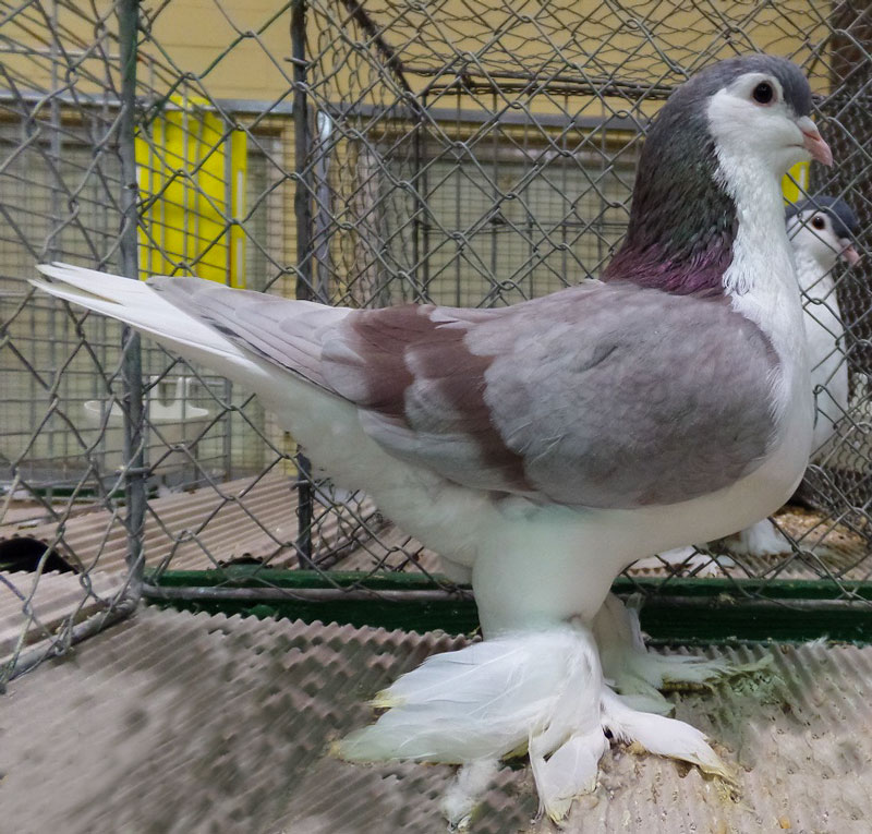 Wenn Lahoretauben nicht so verträglich wären, könnte man sie sicher nicht zusammen mit Perückentauben halten. Lahore und Perückentauben aus der Zucht von Enikö Sáfrány (Ungarn).