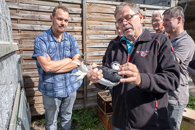 Insgesamt waren 11 Züchter und 3 Gäste vor Ort. Das Bewertungssystem, das jeder der anwesenden Züchter nacheinander ein Tier bespricht und nicht nur die Sonderrichter bewerten, hat sich bewährt, so sieht man seine eigenen Tauben auch einmal von einer anderen Seite. Der Austausch unter den Züchtern der Gruppe wird hierdurch angeregt.